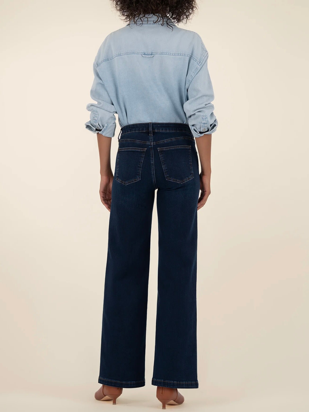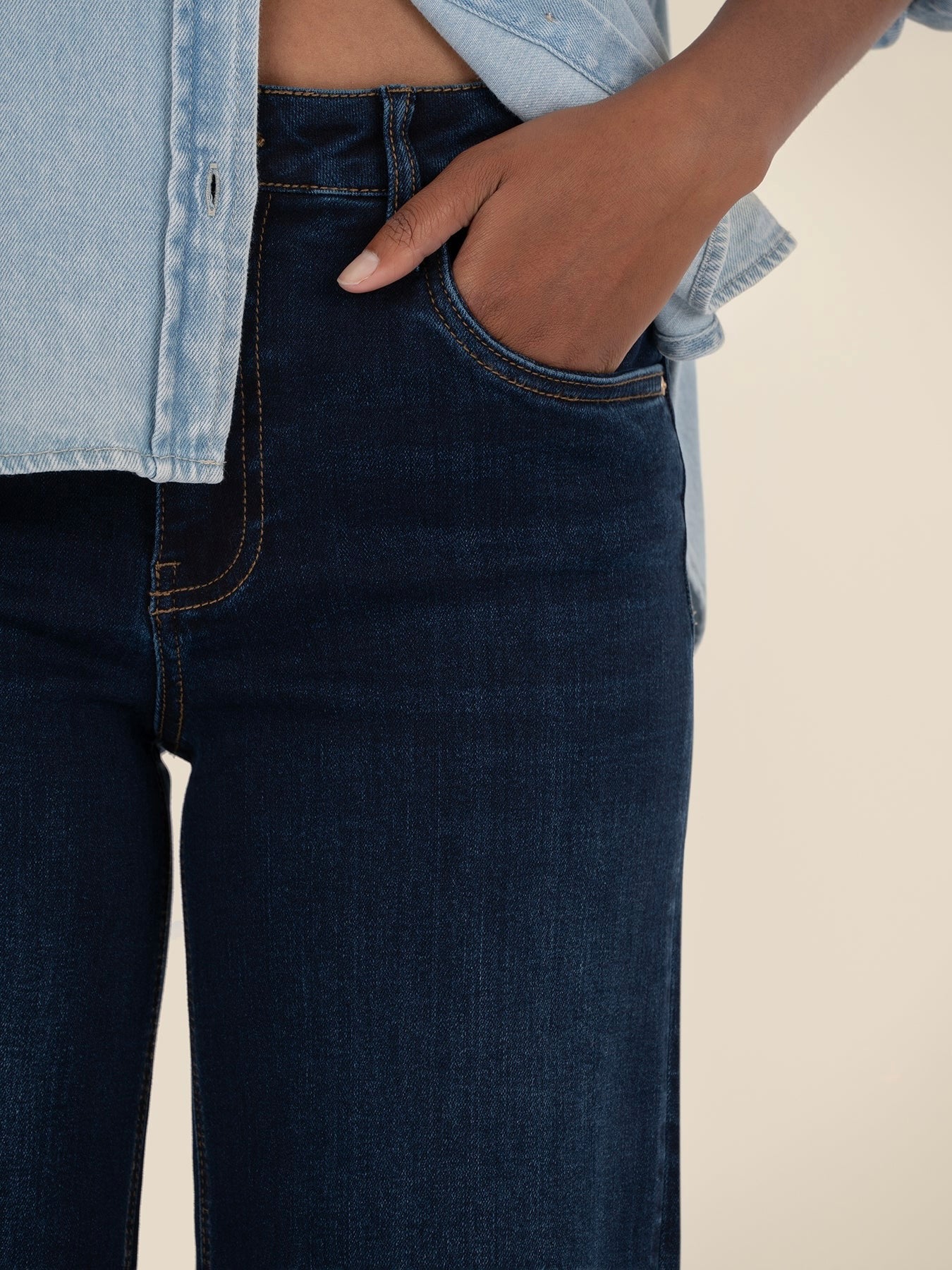 Elevate your denim collection with these high-rise wide leg jeans in a sleek dark wash, made from stretchy material for all-day comfort. They’re perfect for dressing up or dressing down with effortless style.