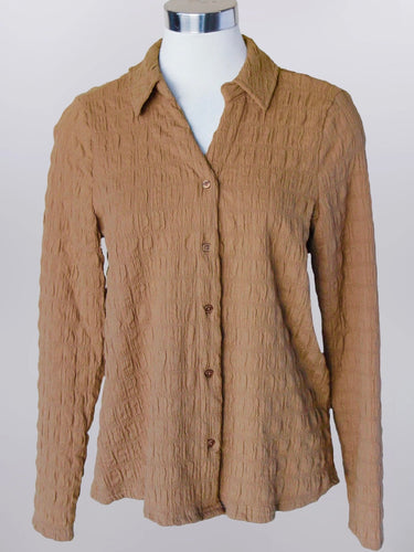 Textured Stretch Button-down Top - Tan